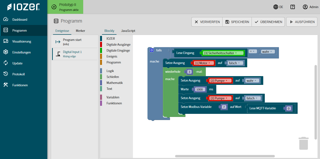 Dank der visuellen Blockly-Oberfläche erstellen Sie Abläufe, Steuerungen und Logiken durch einfaches Ziehen und Zusammenstecken von Bausteinen – so intuitiv wie ein Baukastenspiel. Keine komplizierte Syntax, keine langen Handbücher – sondern schnelle Ergebnisse und maximale Kontrolle.